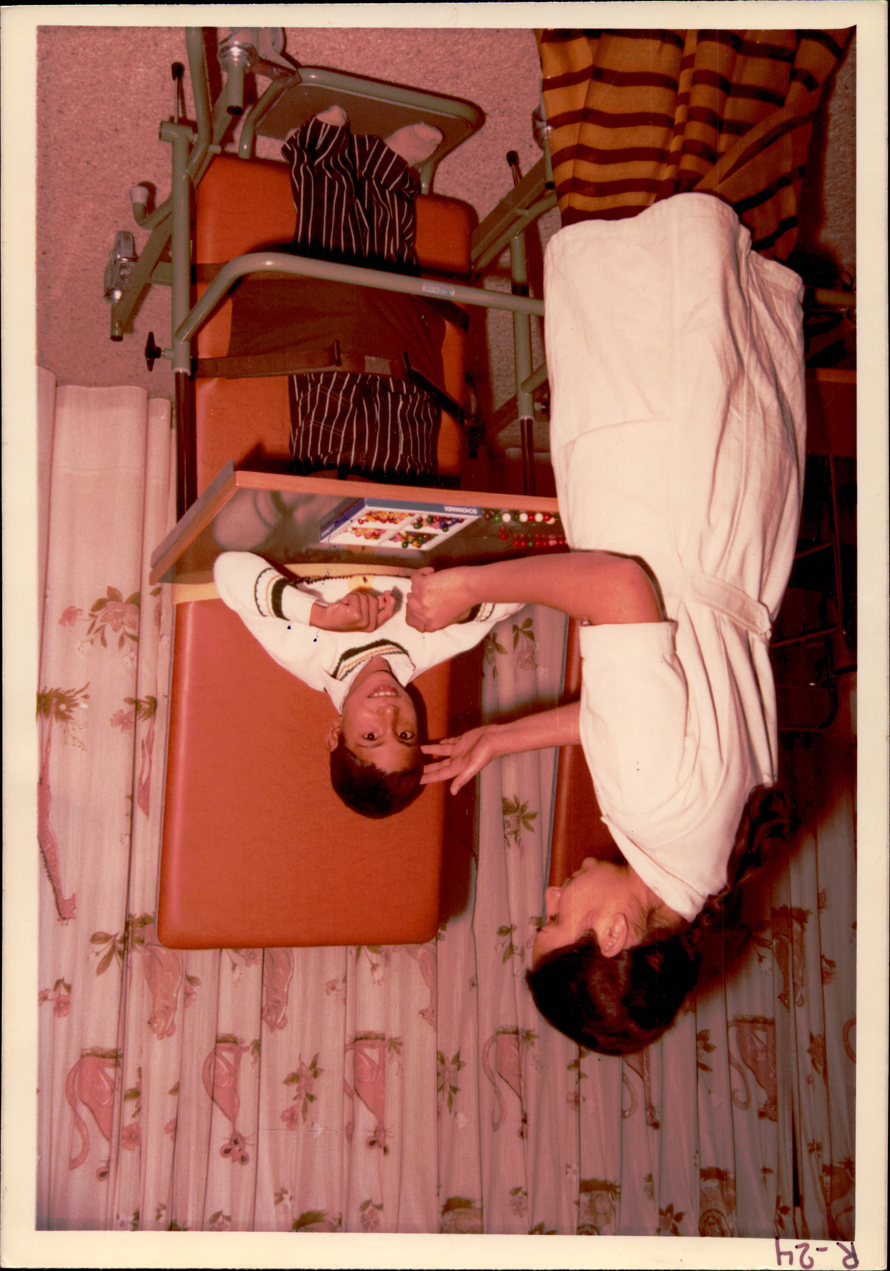 A rare historical photograph from the 1970s documenting the early clinical and rehabilitative services provided by the Kuwait Society for the Handicapped. The image shows a multidisciplinary team—including early specialized nursing staff and physicians—conducting a medical evaluation of a child. This reflects the society's primary mission in its first decade: establishing scientific and medical standards for disability care in Kuwait. During this period, KSH was the sole non-governmental organization providing such integrated services, laying the groundwork for the comprehensive pediatric and rehabilitation departments that would define the society's legacy.